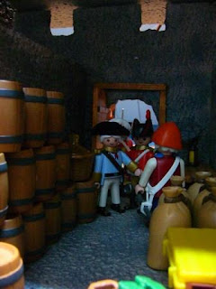| Arriving in Lissabon, Major Sawyer meets Signor Roet who leads the men to the garrison-commander Colonel Benderinos. "Hello Signor Roet, I am here to pay the penalty for the HMS Renown... And I would also like to buy some provisions!" |